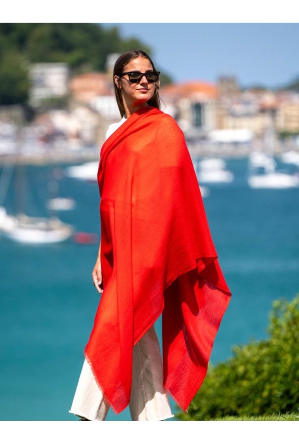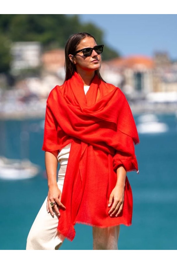 Chal liso de cashmere rojo.