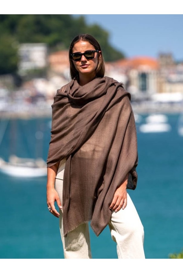 Chal liso de cashmere marrón oscuro.
