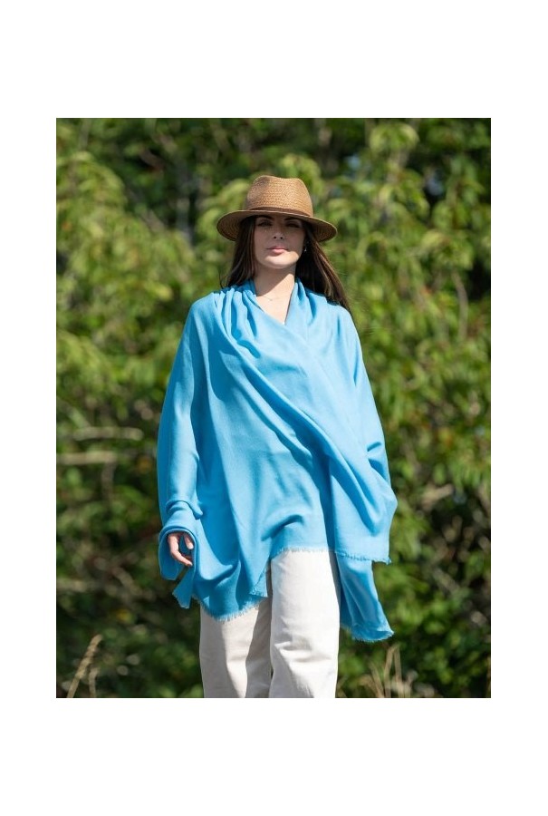 Chal liso de cashmere azul luna.