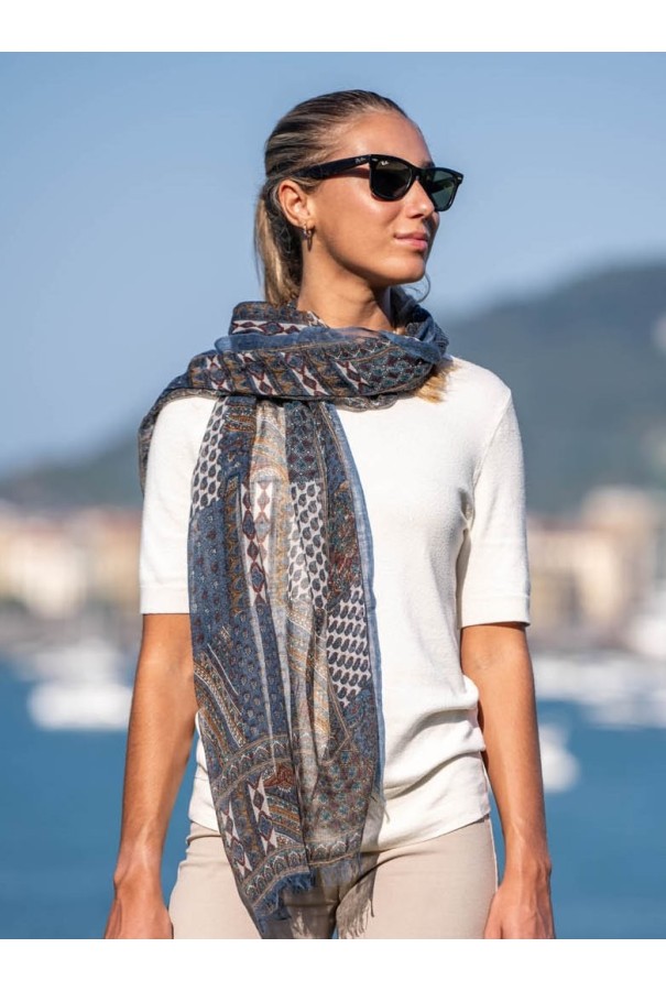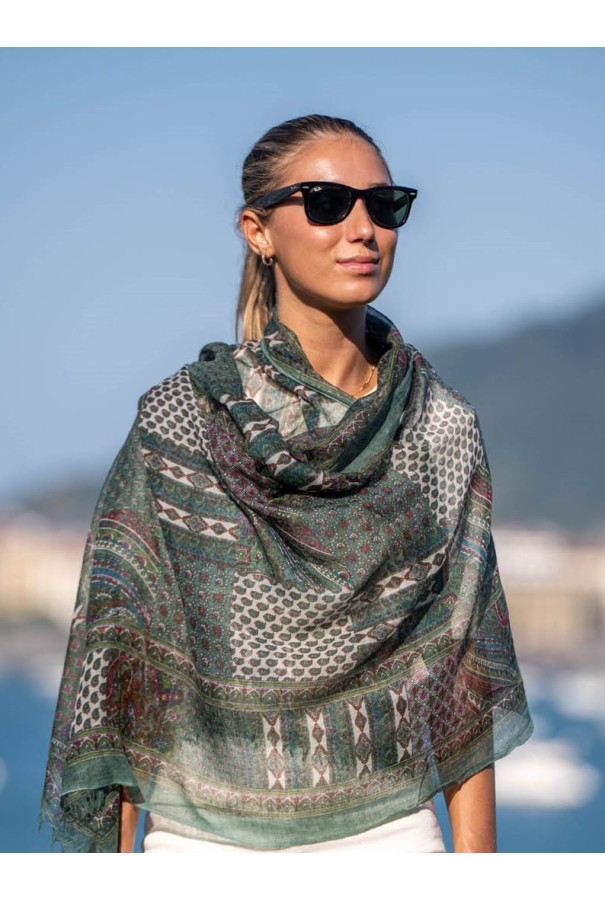 Bufanda estampada de lana con seda.
