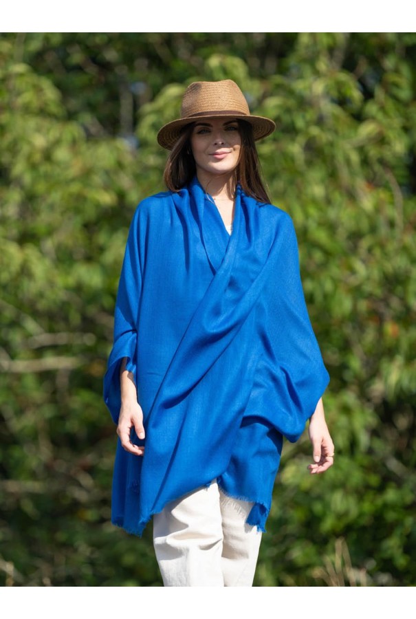 Chal de lana con seda liso azul clásico.