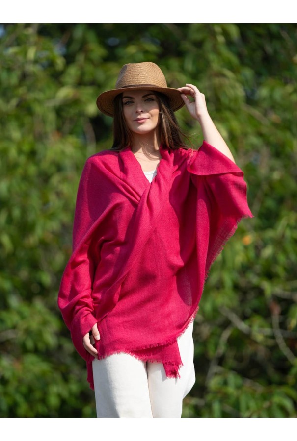 Chal de lana con seda liso rojo persia.