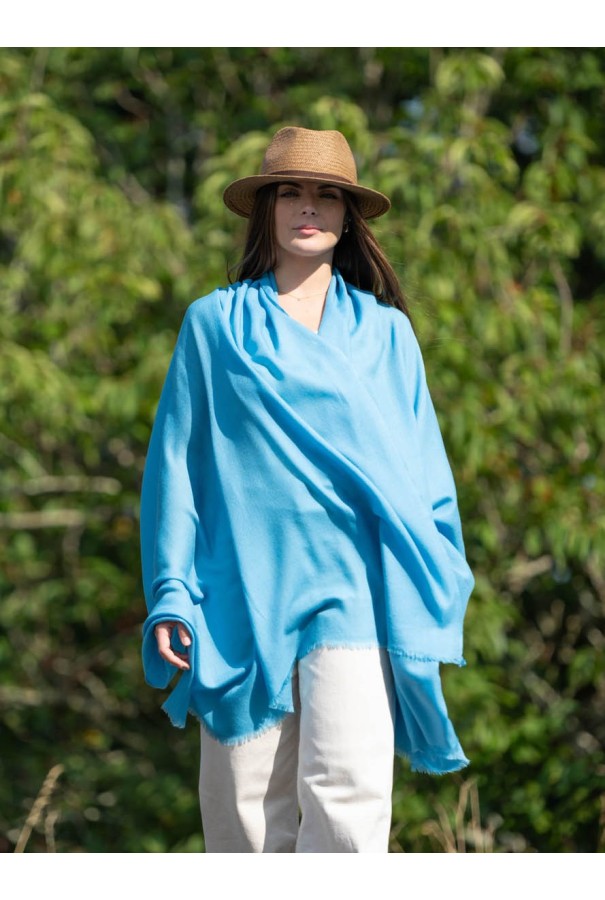 Chal de lana con seda liso azul luna.