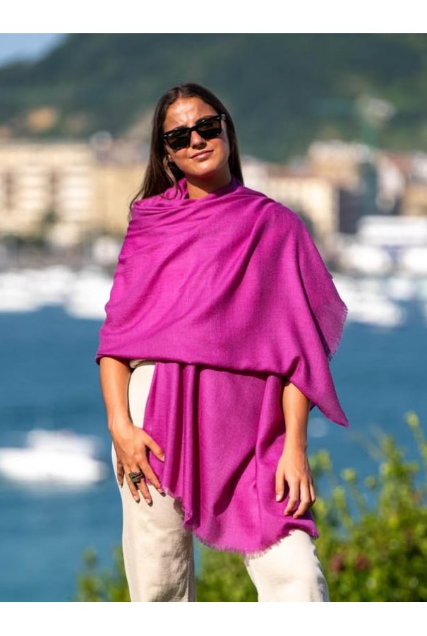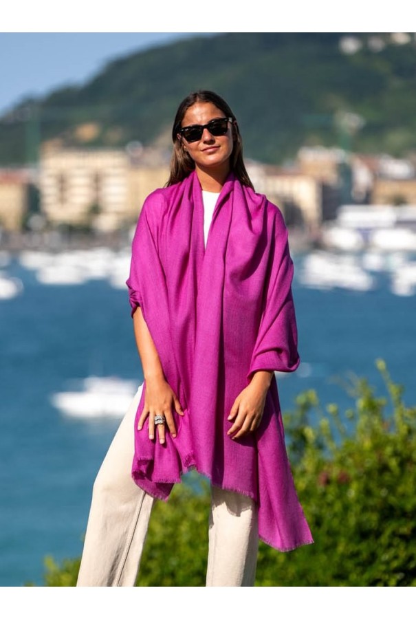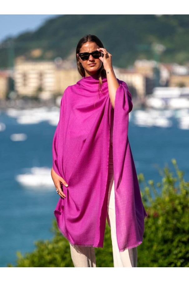 Chal de lana con seda liso rojo vino.