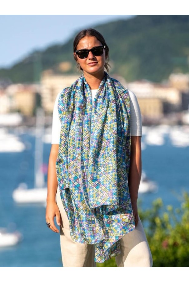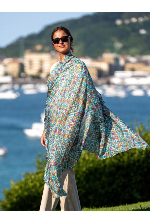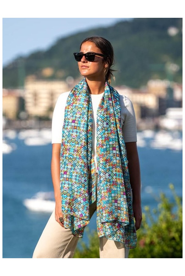 Fular estampado de seda.