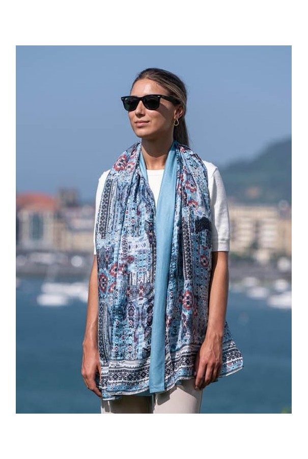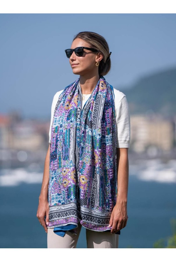 Fular doble de seda y viscosa.