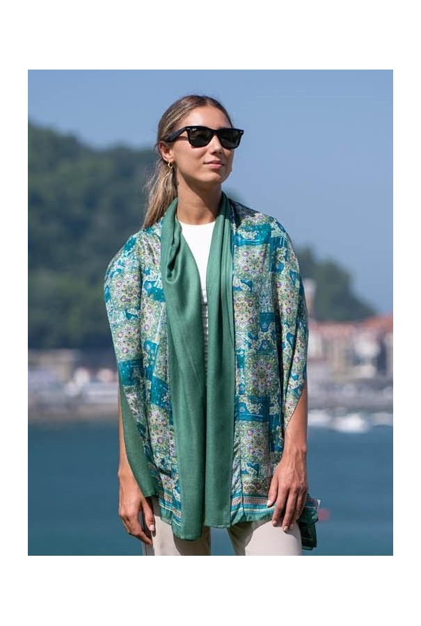 Medida: 180×50 cm seda estampada + 180x50 cm viscosa lisa.