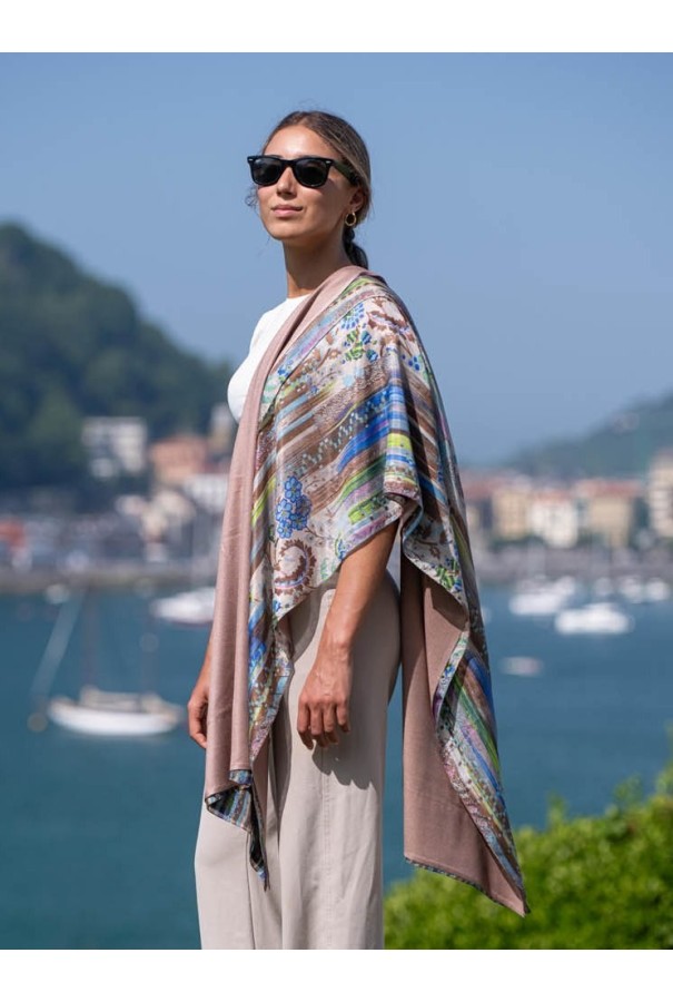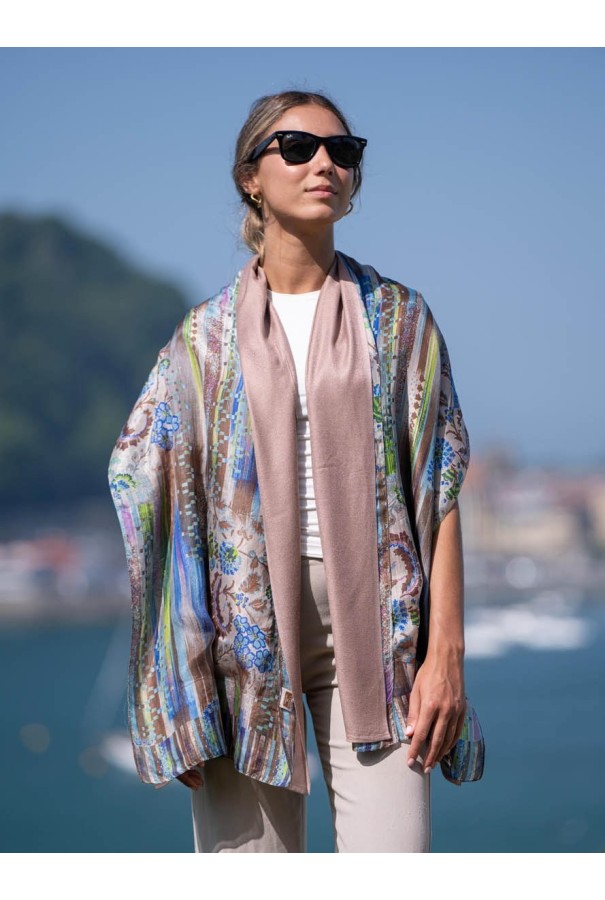 Medida: 180×50 cm seda estampada + 180x50 cm viscosa lisa.