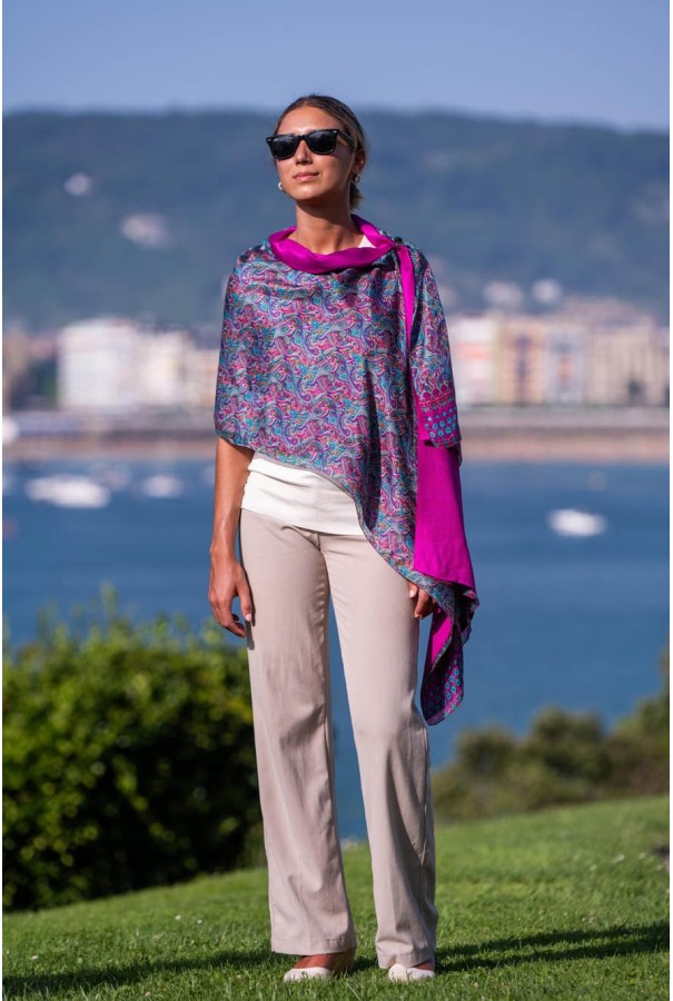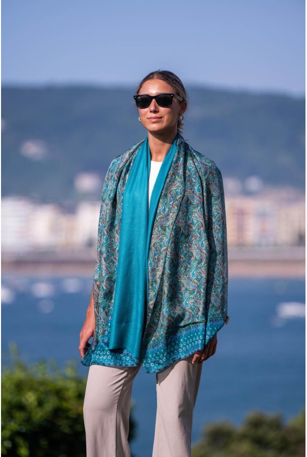 Fular doble de seda y viscosa.
