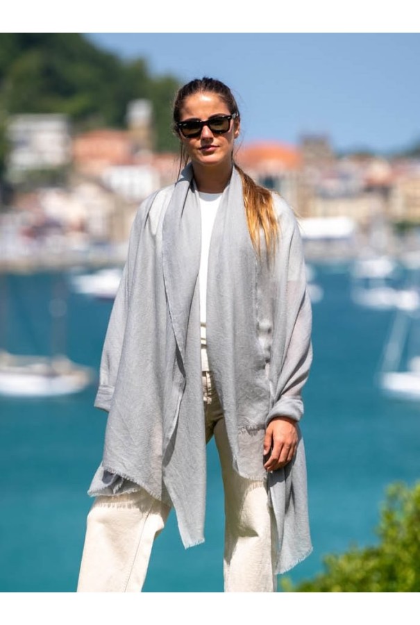 Châle en cashmere uni gris neutre.