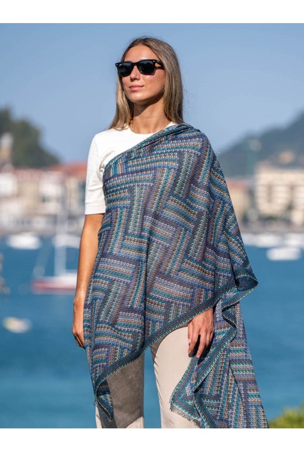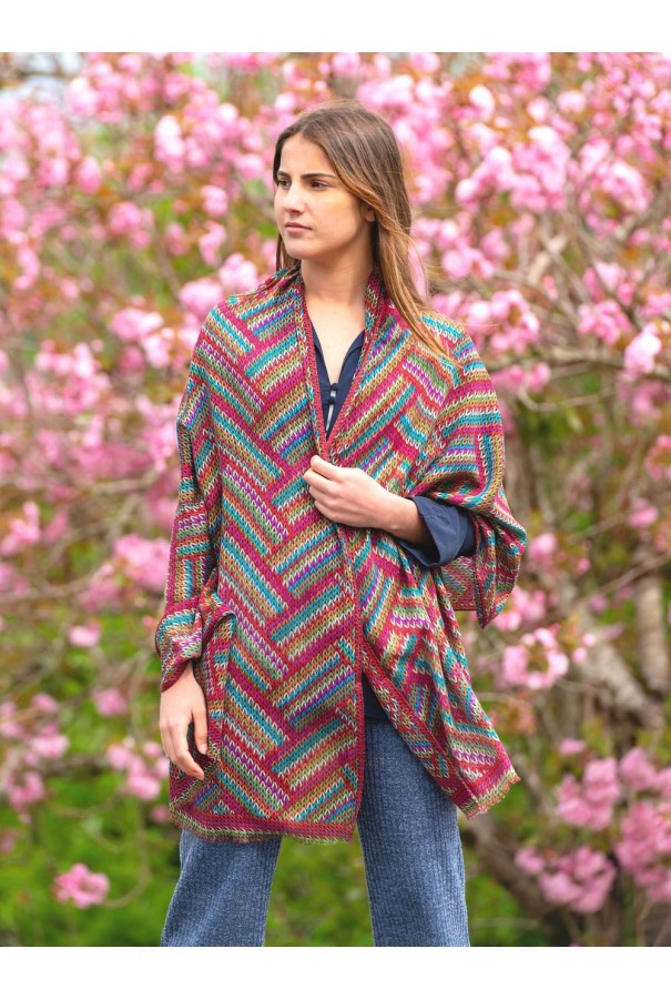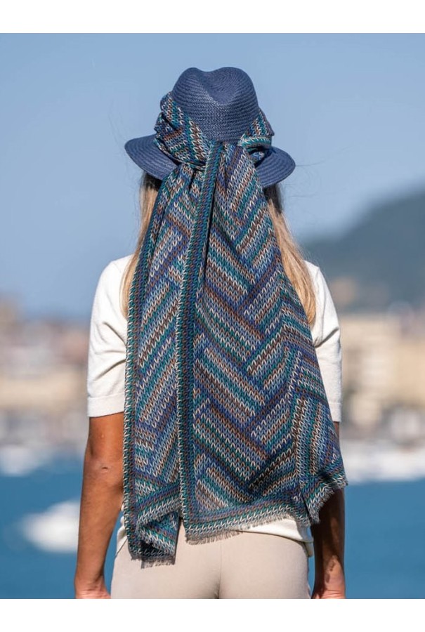 Écharpe en laine et soie imprimée.