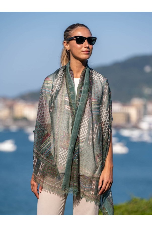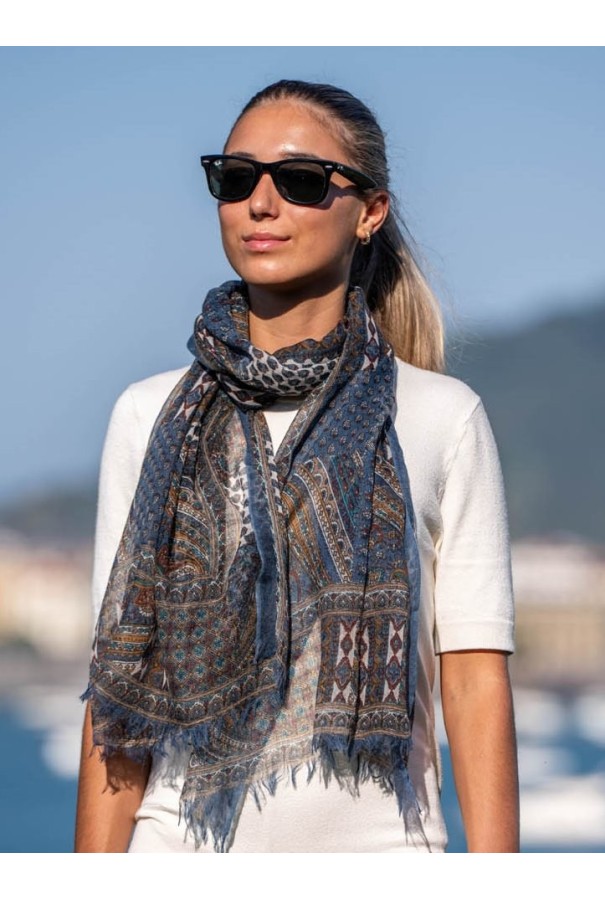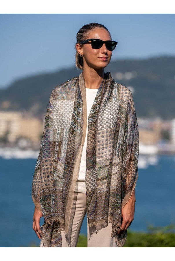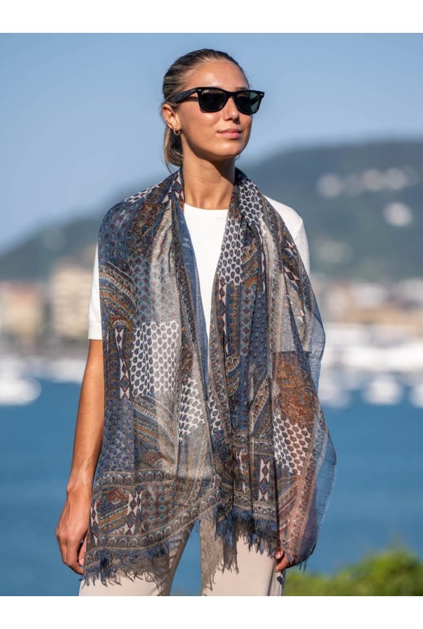 Écharpe en laine et soie imprimée.