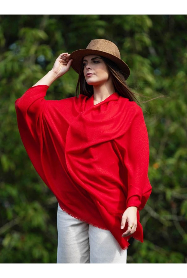 Châle en laine et soie uni rouge.
