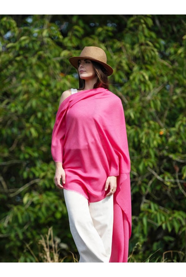 Châle en laine et soie uni rose moyen.
