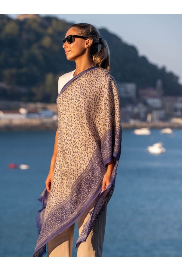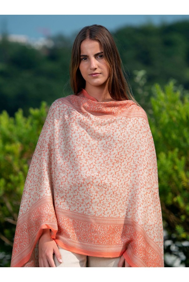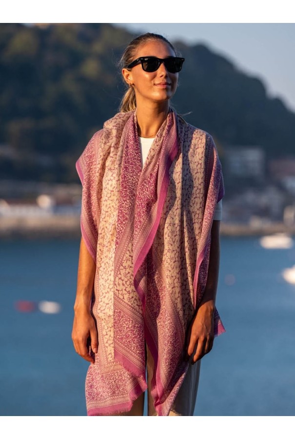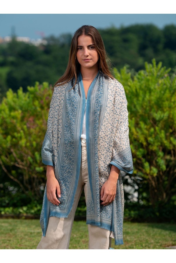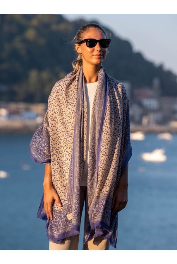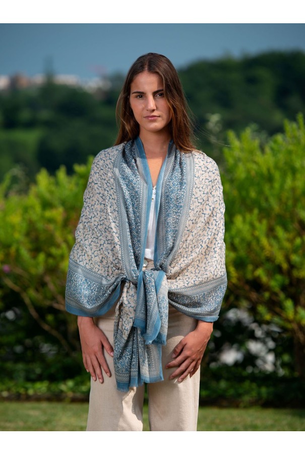 Écharpe en laine et soie imprimée.