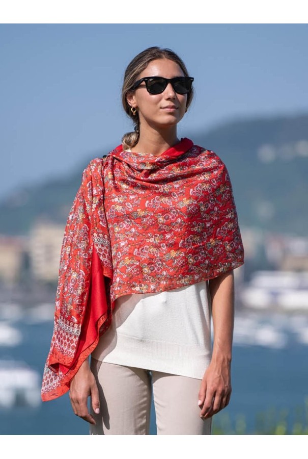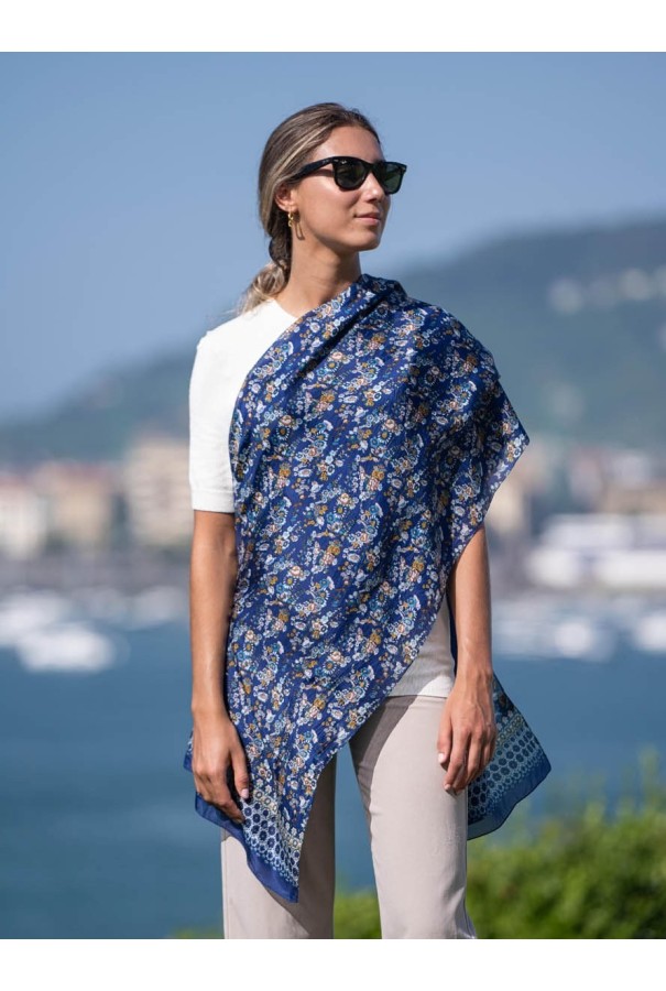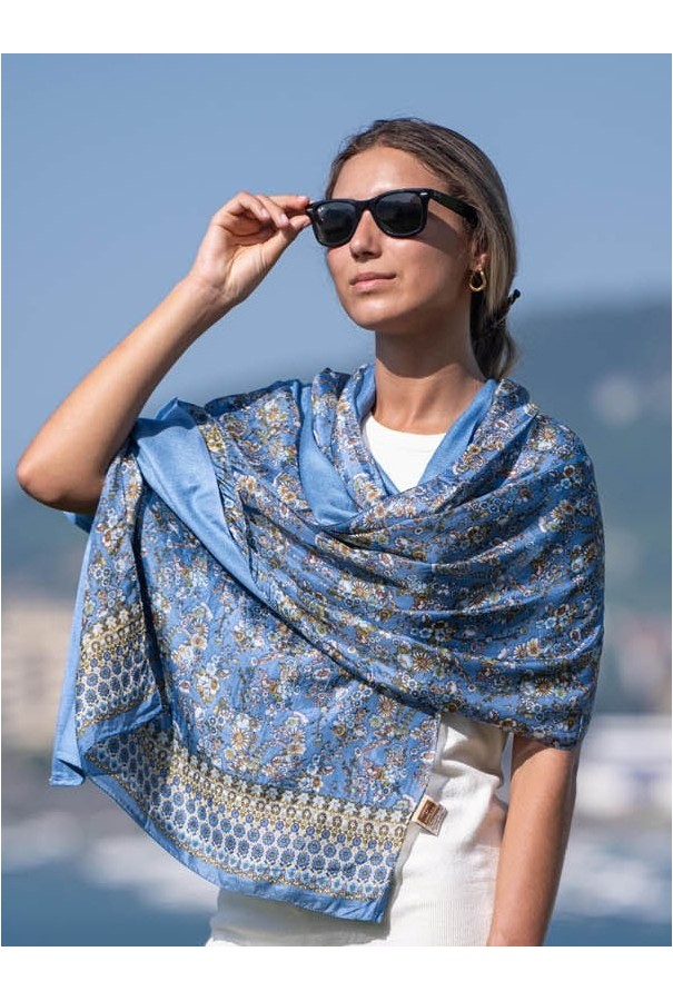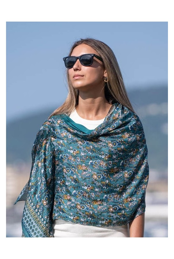 Mesure: 180×50 cm soie imprimée + 180x50 cm viscose unie.