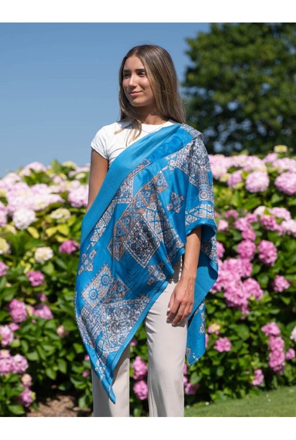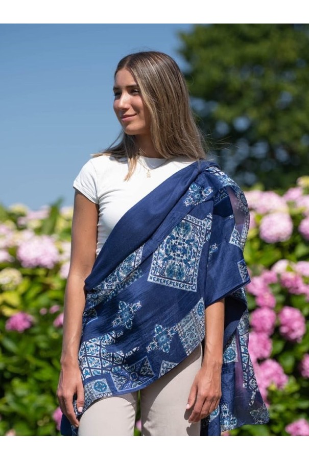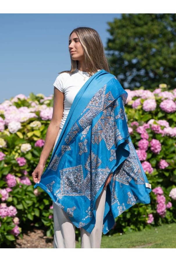 Mesure: 180×50 cm soie imprimée + 180x50 cm viscose unie.