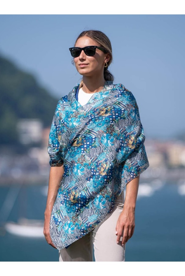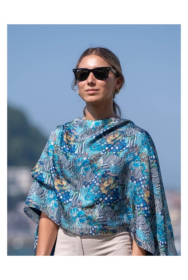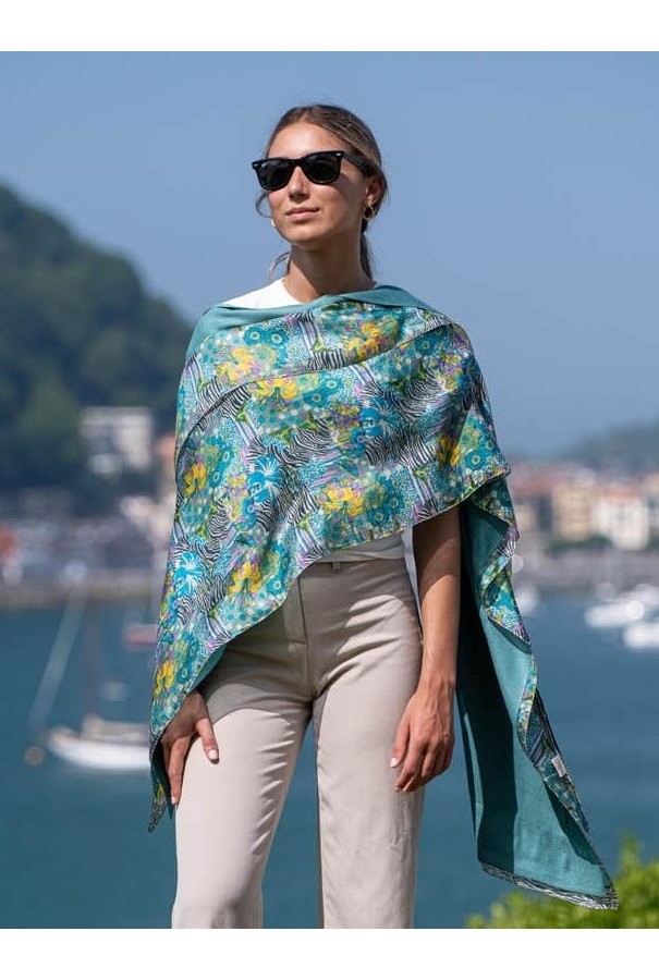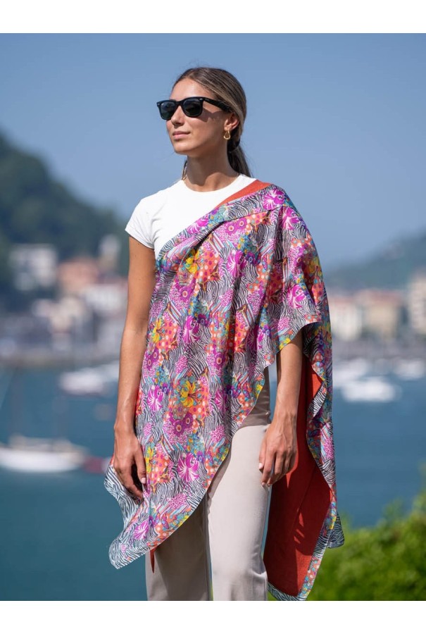 Mesure: 180×50 cm soie imprimée + 180x50 cm viscose unie.