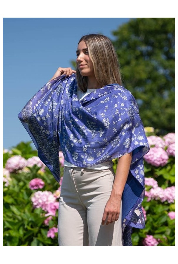 Mesure: 180×50 cm soie imprimée + 180x50 cm viscose unie.