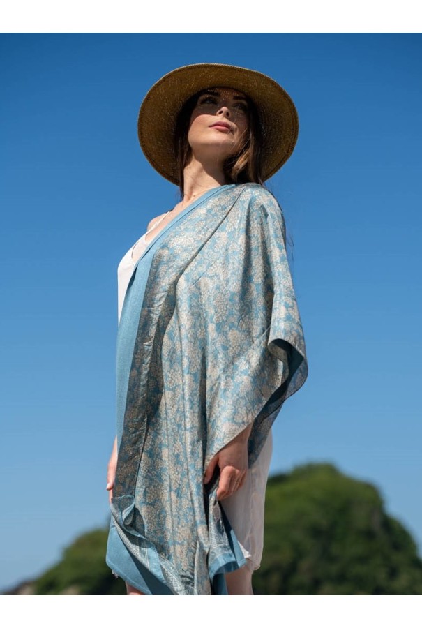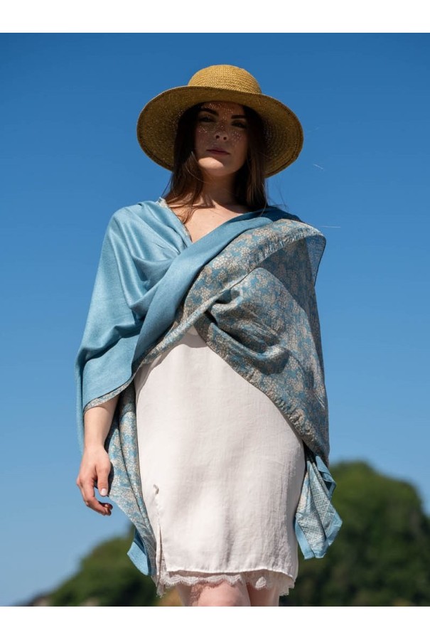 Mesure: 180×50 cm soie imprimée+ 180x50 cm viscose unie.