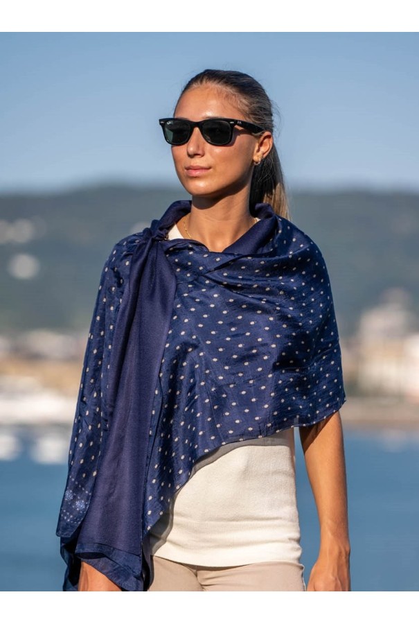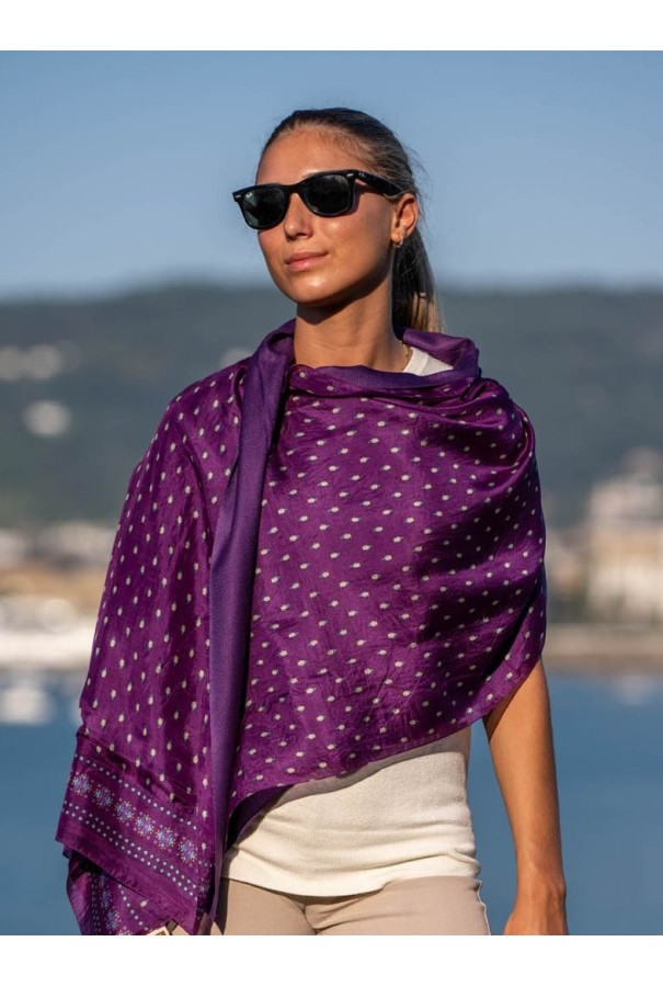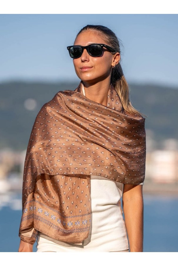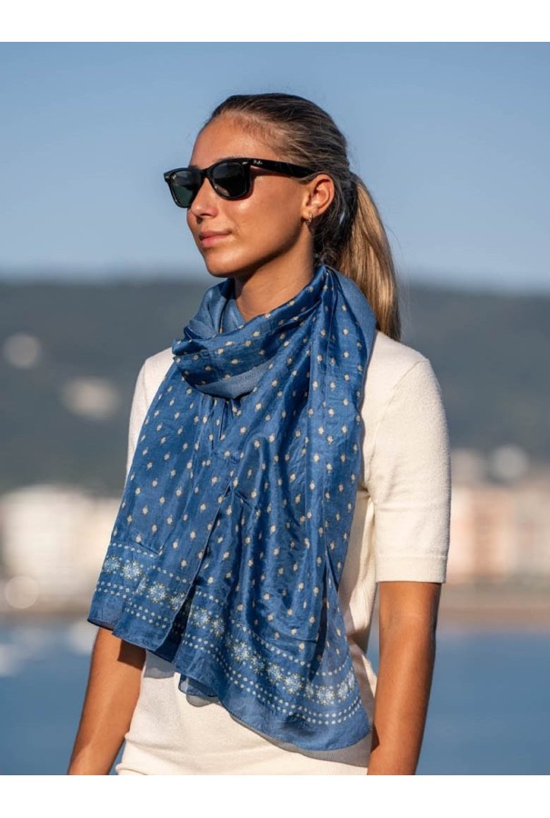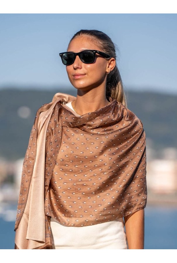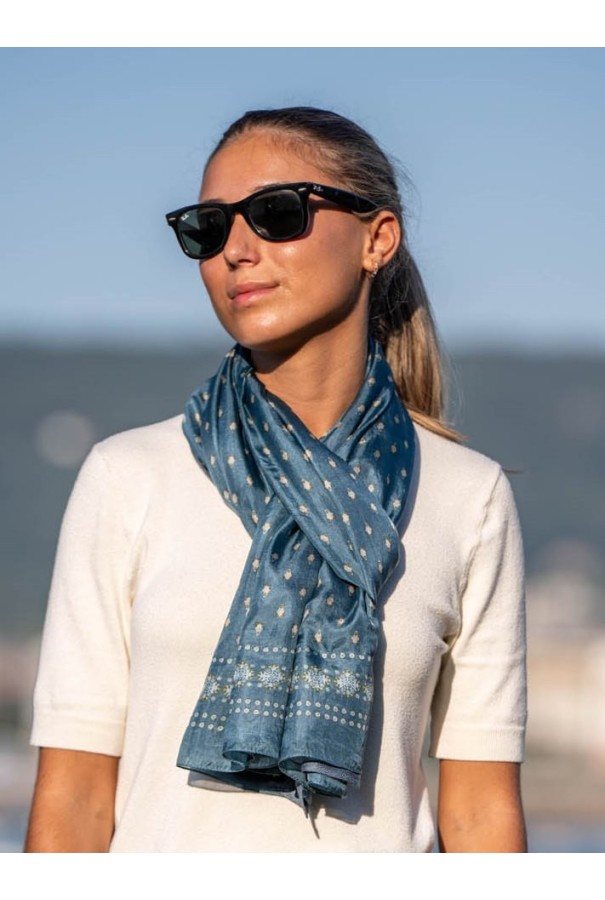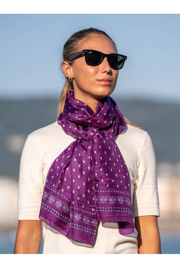 Mesure: 180×50 cm soie imprimée + 180x50 cm viscose unie.