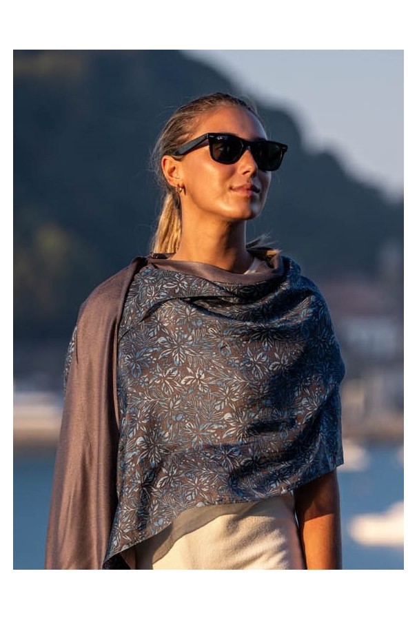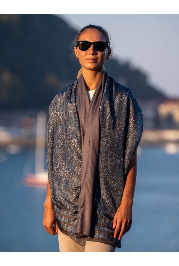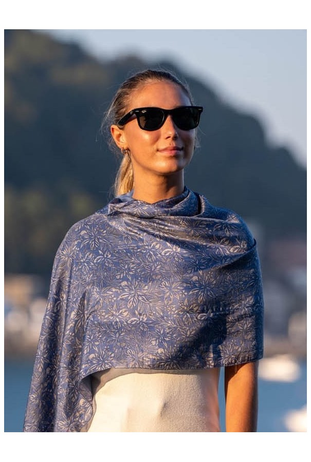 Mesure: 180×50 cm soie imprimée + 180x50 cm viscose unie.