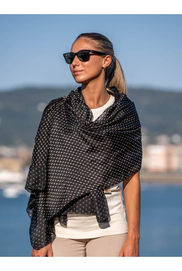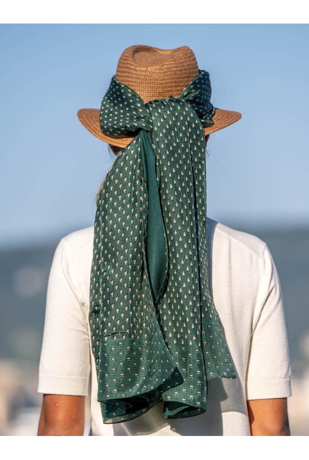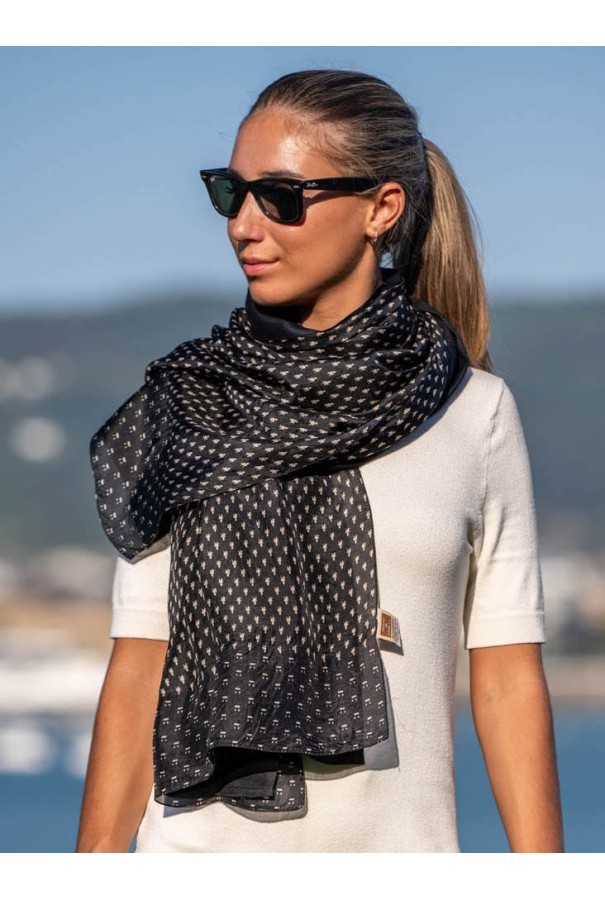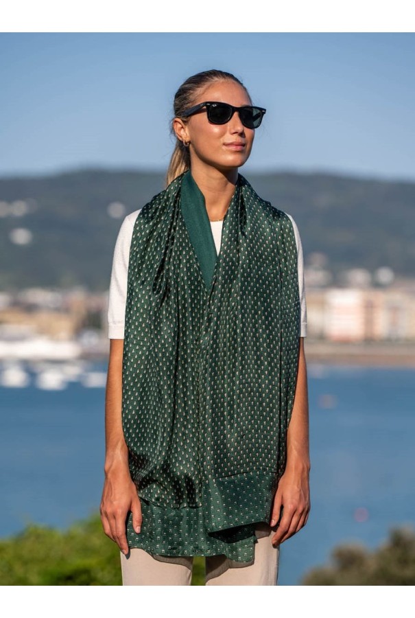 Mesure: 180×50 cm soie imprimée + 180x50 cm viscose unie.