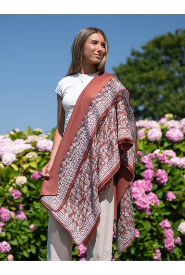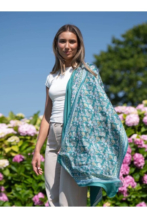 Mesure: 180×50 cm soie imprimée + 180x50 cm viscose unie.