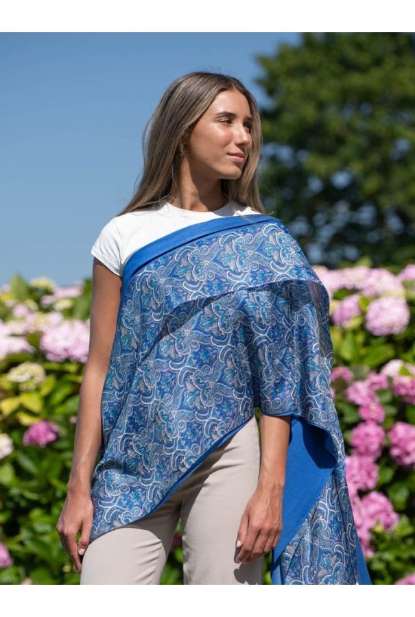 Mesure: 180×50 cm soie imprimée + 180x50 cm viscose unie.