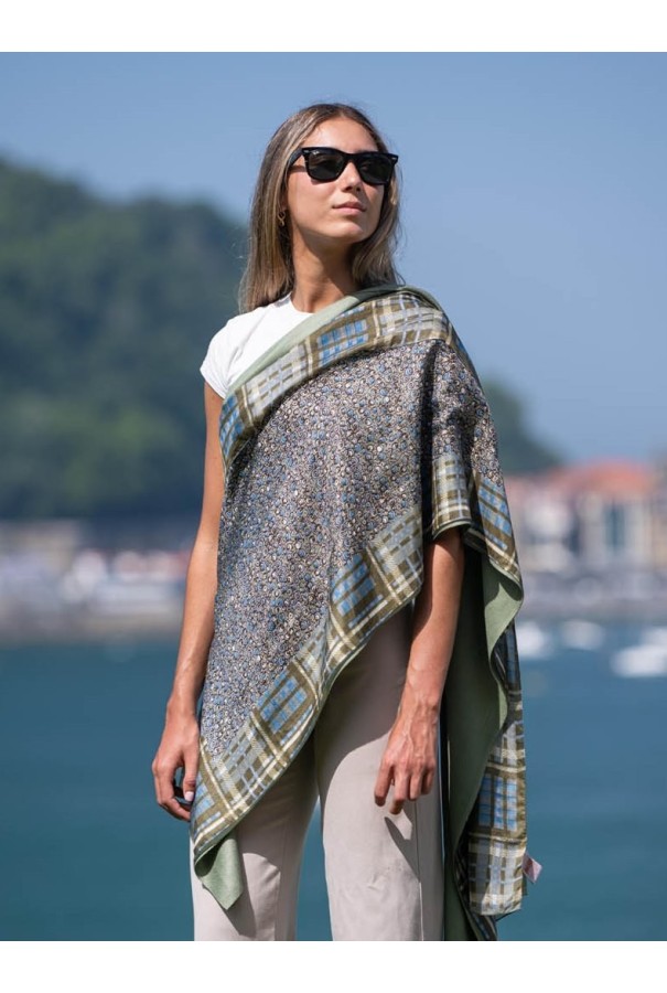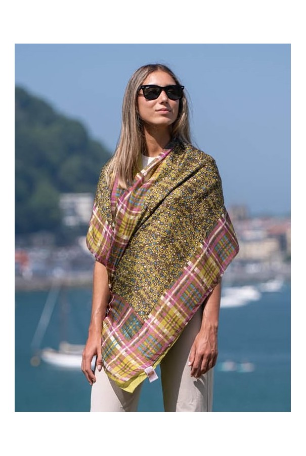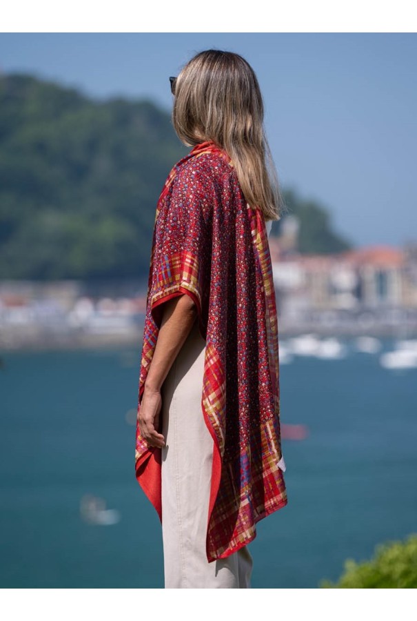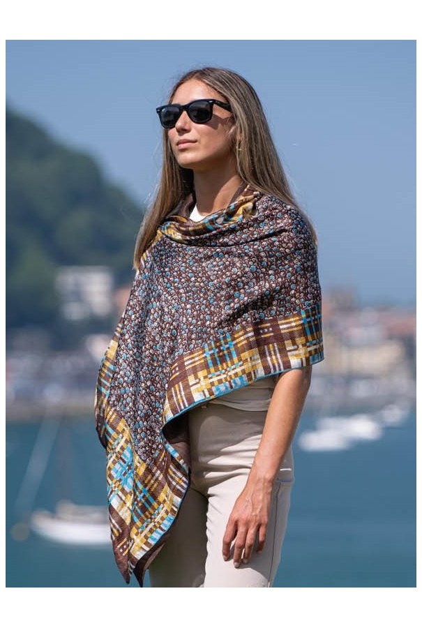 Mesure: 180×50 cm soie imprimée + 180x50 cm viscose unie.