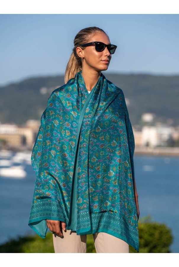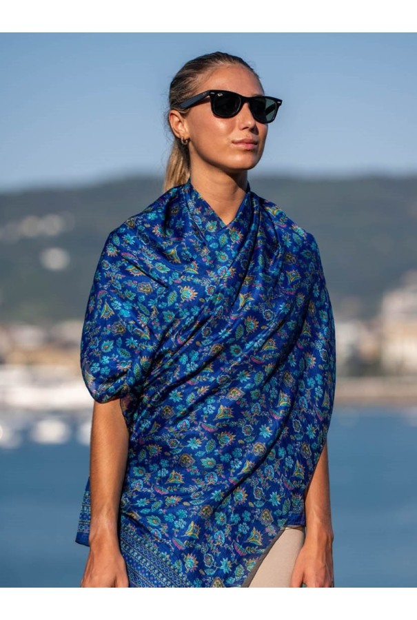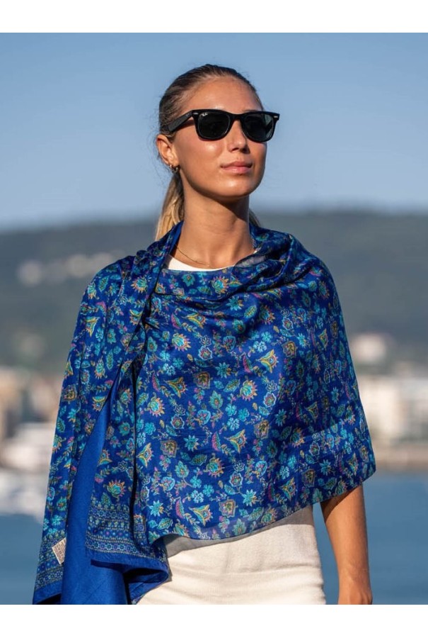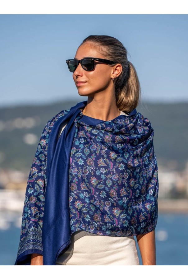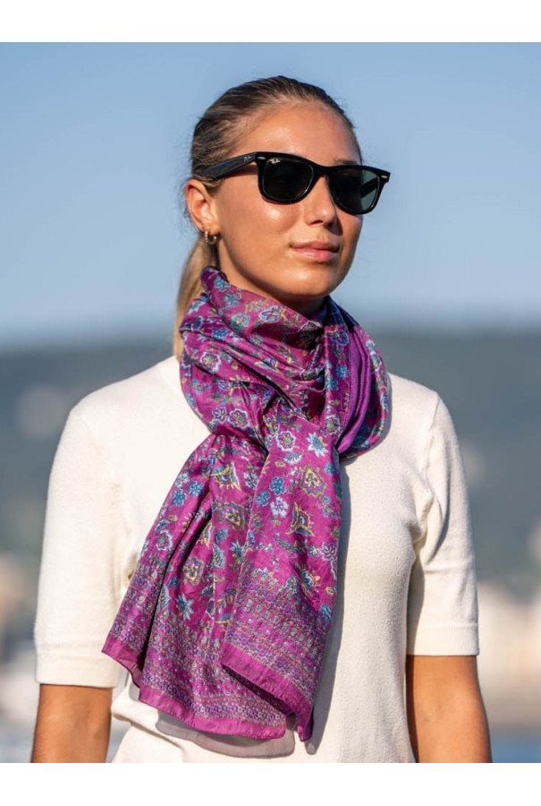 Mesure: 180×50 cm soie imprimée + 180x50 cm viscose unie.