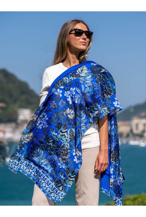 Mesure: 180×50 cm soie imprimée + 180x50 cm viscose unie.