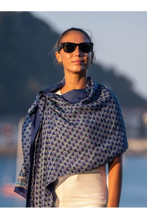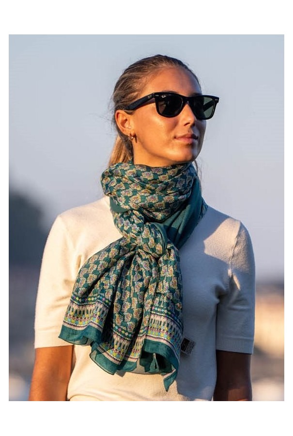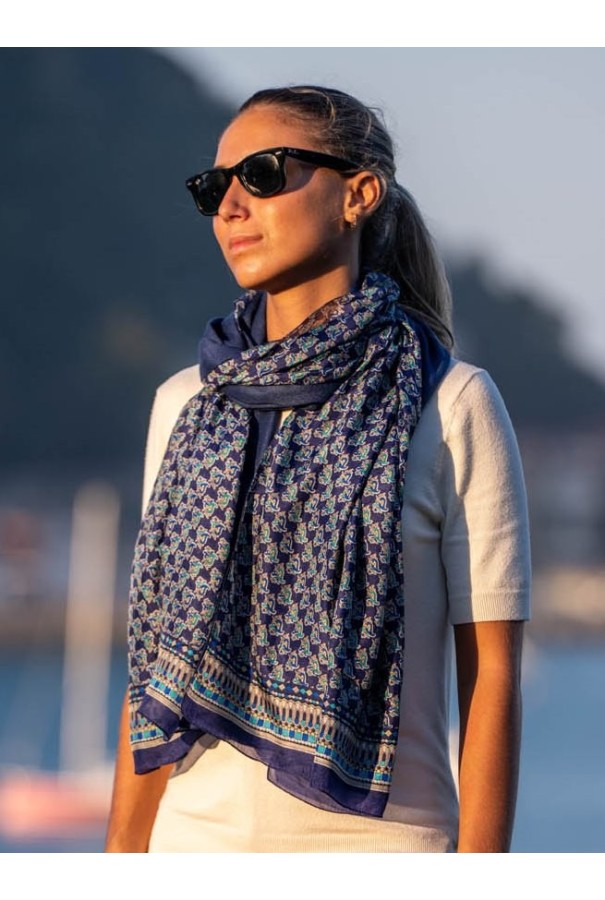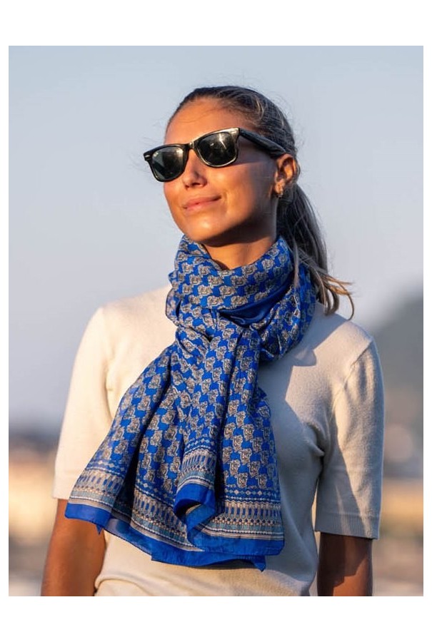 Mesure: 180×50 cm soie imprimée + 180x50 cm viscose unie.