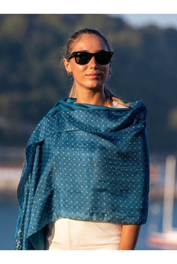 Mesure: 180×50 cm soie imprimée + 180x50 cm viscose unie.