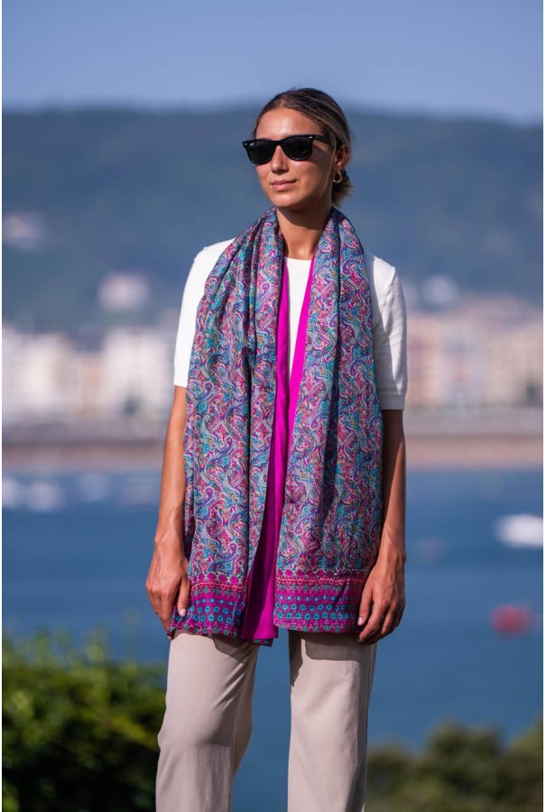 Mesure: 180×50 cm soie imprimée + 180x50 cm viscose unie.