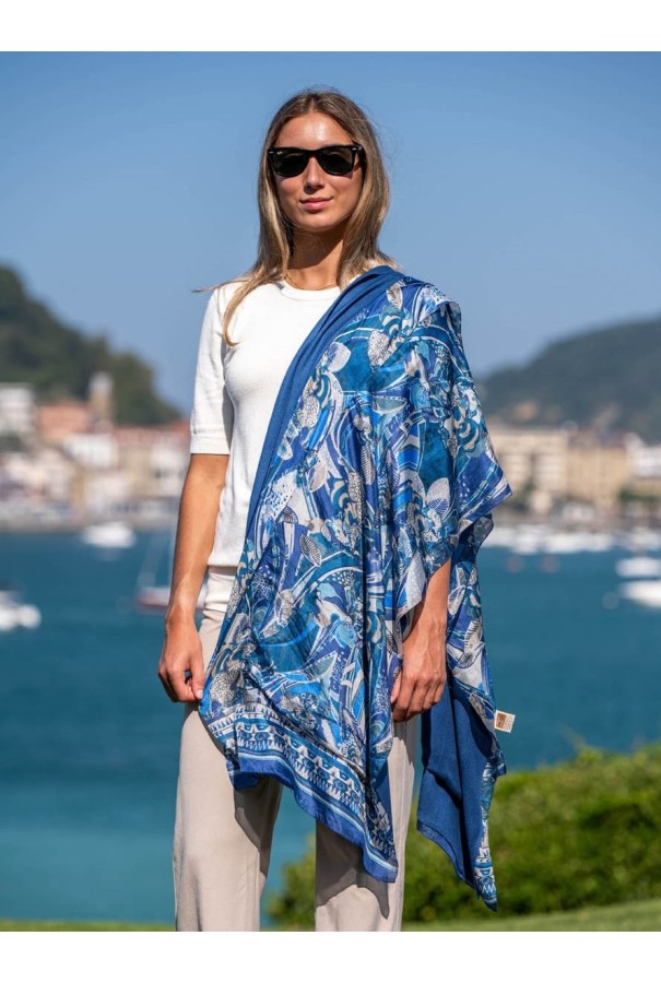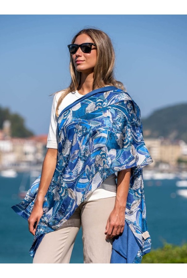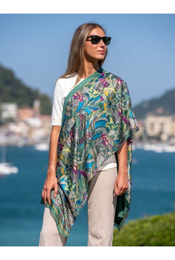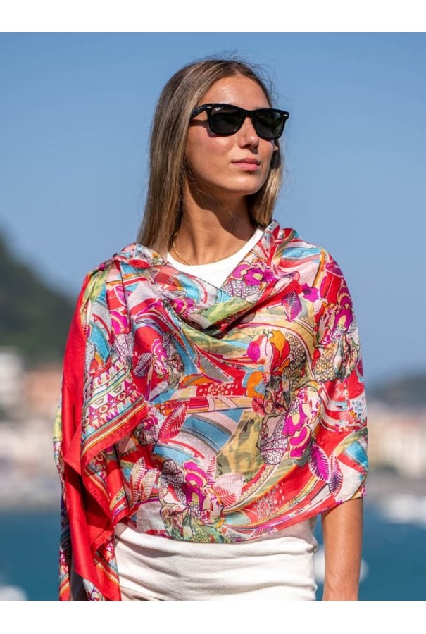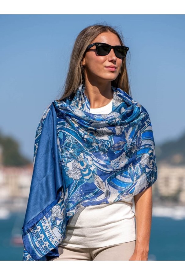 Mesure: 180×50 cm soie imprimée + 180x50 cm viscose unie.