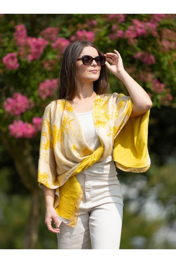 Mesure: 180×50 cm soie imprimée + 180x50 cm viscose unie.
