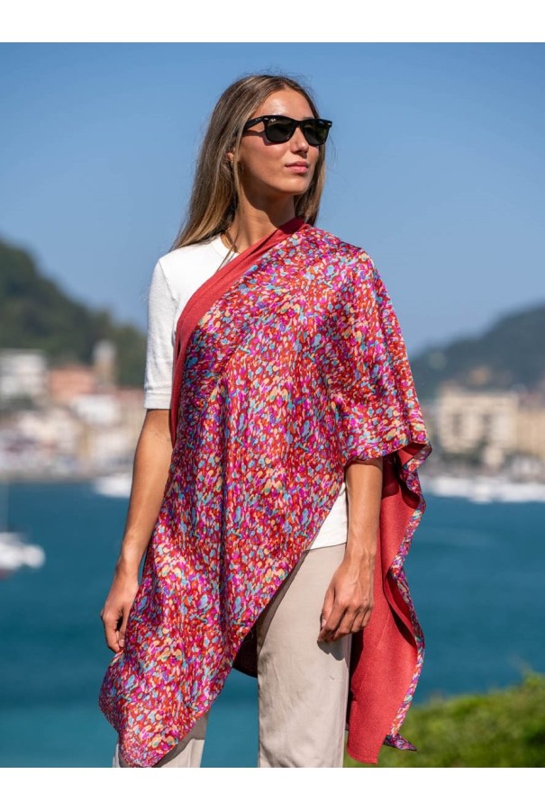 Mesure: 180×50 cm soie imprimée + 180x50 cm viscose unie.