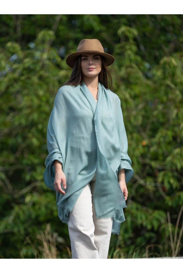 Wool and silk plain shawl mineral blue.