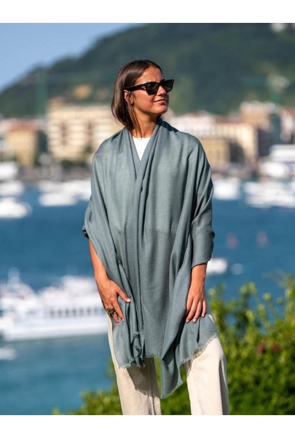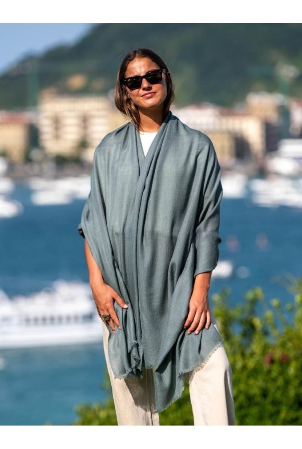 Wool and silk plain shawl vert forêt.